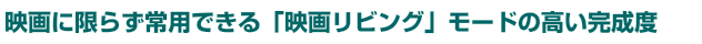 色味を鮮やかにしたチューニングはあくまでもリビング志向。しかし、明部は伸びやかに、さらに同時に暗部コントラストは従来以上に深く沈むために全体の遠近感がよりリアルに感じられる。