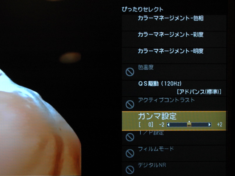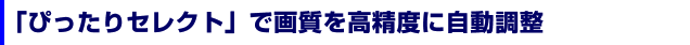 さらに「ぴったりセレクト」では、ディスクの種類や映像ソースの種類による自動調整も行われる。BD/DVDの種類や映像内容によってノイズリダクションのレベルを調整するほか、映像ソースもフィルム素材の映画、ゲーム、写真などを自動的に判別し、それにあわせた画質に設定する。たとえば、より繊細な再現の求められる映画では最大ゲインを抑えるなどの処理を行い、フィルムの世界に浸れる画作りを行ってくれる。