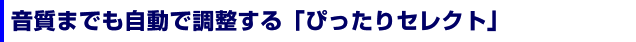 DX2の画質を向上させるもう一つの注目技術に「ぴったりセレクト」がある。RGBセンサーで照明の明るさや色温度を自動検出し、画質を自動調整。さらに音質まで調整する機能を盛り込んだ、総合的な最適化技術だ。