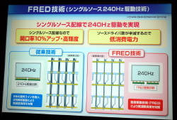 | FRED技術は1本の信号ラインで240Hz駆動を実現。明るく低消費電力な映像が実現できる |
