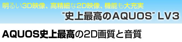 3Dの画質を高めるためには2Dの画質を極めることが欠かせない。その一方、3D再生を視野に入れて導入した画質改善は、2Dにおいてもプラスにはたらくことが期待できる。コントラスト感しかり、応答性もまたしかりである。その意味でLV3シリーズの2D映像には大いに期待がふくらむ。