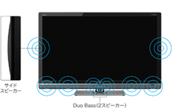 音質についても触れておかなければならない。LV3ラインの46V型以上の3機種は4ウェイ8スピーカーシステムを内蔵し、本体だけで2.1ch再生が可能だ。ウーファーは2つのユニットを対向配置したDuoBass方式を採用。さらに、音場再生技術を投入したヤマハのAudioEngineを搭載するなど、LV3シリーズはオーディオ性能にもこだわりを見せる。