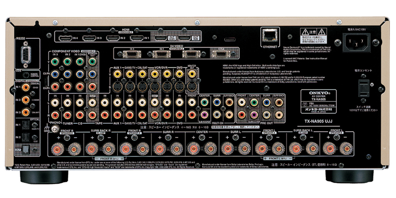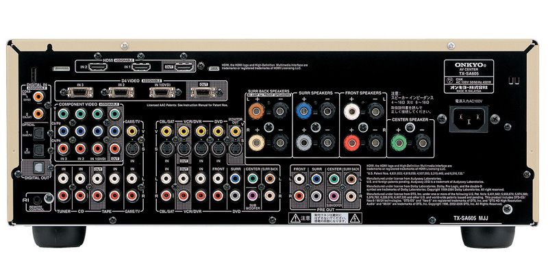 ●映像出力端子:D端子1、コンポーネント端子1、Sビデオ端子2、コンポジット端子2 ●音声入力端子:デジタル5(光3/同軸2)、アナログ8(2ch