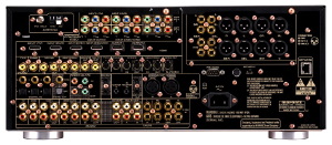 ●音声出力端子:同軸デジタル1、光デジタル1、2chアナログ(RCA)6、7.1chプリアウト(RCA)1、7.1chプリアウト(XLR)1、ヘッドホン出力1