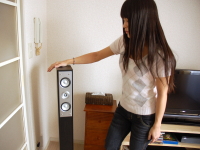 | 実は取材前、一番不安だったのが設置作業だった。どれだけ操作が簡単でも、もし設置がひとりでできないようなら結局「やっぱりAV機器は敷居が高い」で終わってしまう・・・。そんな不安をよそに、岡崎さんはひょいひょいとAX-V465とスピーカーを運んで設置していく。