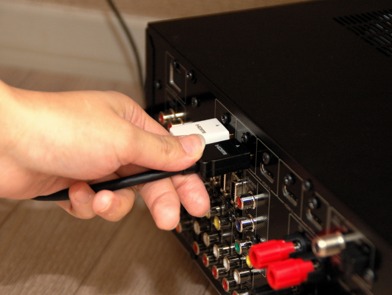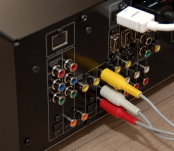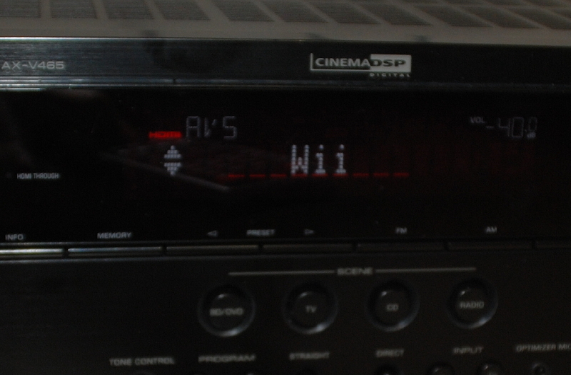 まずブルーレイレコーダーの接続だが、ブルーレイソフトのクオリティを最大限に引き出すためデジタルの映像と音声を1つのケーブルで伝送できるHDMIケーブルを使用する。AX-V465の「HDMI出力」とテレビを、「HDMI1」とブルーレイレコーダーを接続するだけで完了。Wiiは本体にHDMI端子を搭載しておらず、外部機器との接続には専用ケーブルが必要になる。今回は購入時に同梱されている 「 Wii専用AVケーブル (RVL-009)」を 使用した。