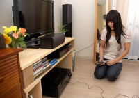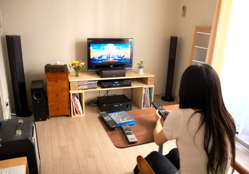 そして今年、ホームシアターに興味を持っている方におすすめしたい製品がヤマハから登場した。最新機能に対応しながら5万円を切る(それもメーカー価格で!)AVアンプ「AX-V465」である。本機の実力についてはライター折原一也氏のコラムをご覧いただくとして、とにかくそんな素敵な製品が登場したのだから、これまでホームシアターとは無縁の生活を送っていた一般の方に是非AX-V465でサラウンドを体験してもらいたい!そんな思いからモニターを募りAX-V465導入レポートをお送りすることにした。 今回取材に参加していただいたのは都内に住む岡崎涼子さん。「映画や音楽、ゲームが大好きで迫力あるサウンドで映画を観たりゲームをしてみたかった」という岡崎さんの話を聞き、BDレコーダーとwiiを接続することにした。編集部がサラウンドや機器について一通り説明した後、6.3畳の部屋に早速セッティングスタート!