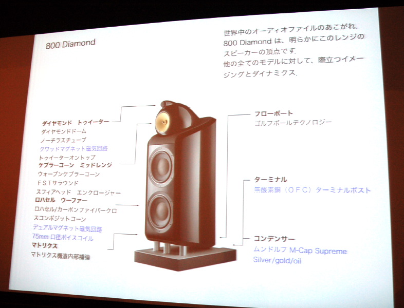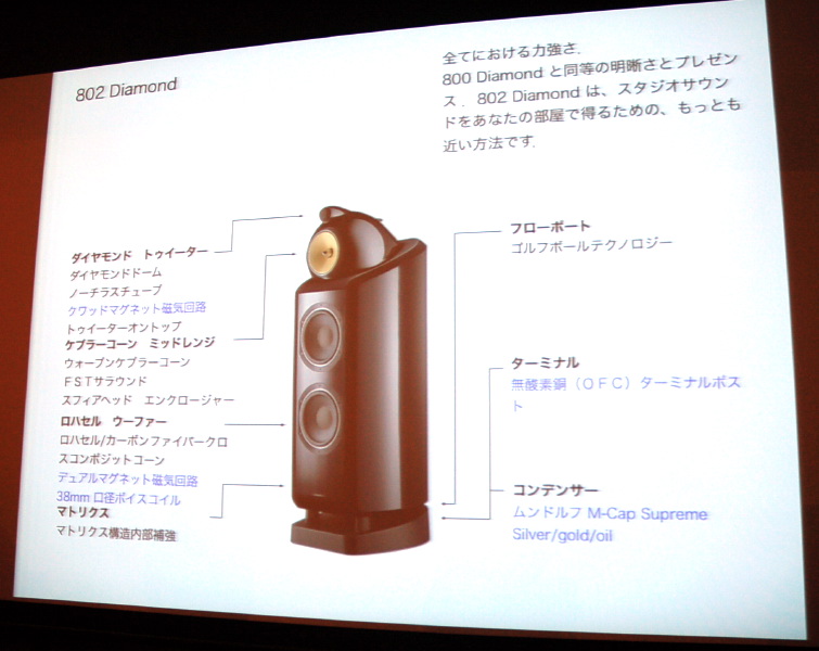 802 Diamondは広大なDレンジとfレンジを誇るシステムで、大オーケストラや大合唱団のスケール感豊かな豪快なサウンドにも対応できるオールマイティシステムである。歪み感のない美しいサウンドも魅力的だが、表現の根幹はあくまでもリアルなサウンドにおいている。