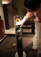 老婆心ながら説明すると、このノーチラス・トゥイーターはB&Wのスピーカーに搭載されている様々な技術の中でも特に大きな特徴を持つ。ドーム形式の振動板の背後に管楽器のような筒を繋いで、振動板背圧で発生する不要な音のエネルギーを緩やかに減衰・吸収し、音を曇らせる共鳴を最小限に抑えるというものだ。本機はこのユニットをエンクロージャーに内蔵せず、独立して上部に一体化させており、これは800系のオープントップ構造に準じた発想だ。音がバッフル表面に沿ってエンクロージャーのエッジに放射されて位相を乱す、いわゆる回析現象を回避しているのである。さらにこれらのドライバーは、フラグシップである800系用のドライバーを小口径化したものを使用している。