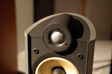 ウォーブン・ケブラーは硬化樹脂を埋め込んだ合成アラミド繊維の織布で、防弾チョッキにも使われるもの。B&Wは1974年から一貫して上級機に使い続けている。パラレル駆動のダブルウーファーは5インチ(130mm)のペーパーケブラーコーン。高域を受け持つのは25mmのアルミニウムドームトゥイーターで、ノーチラスチューブローデッド型である。