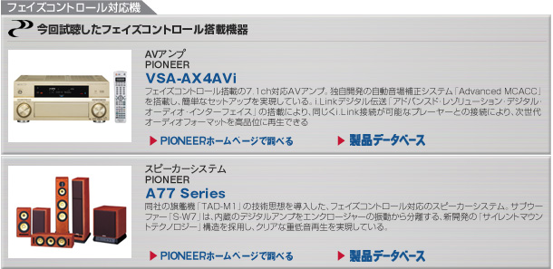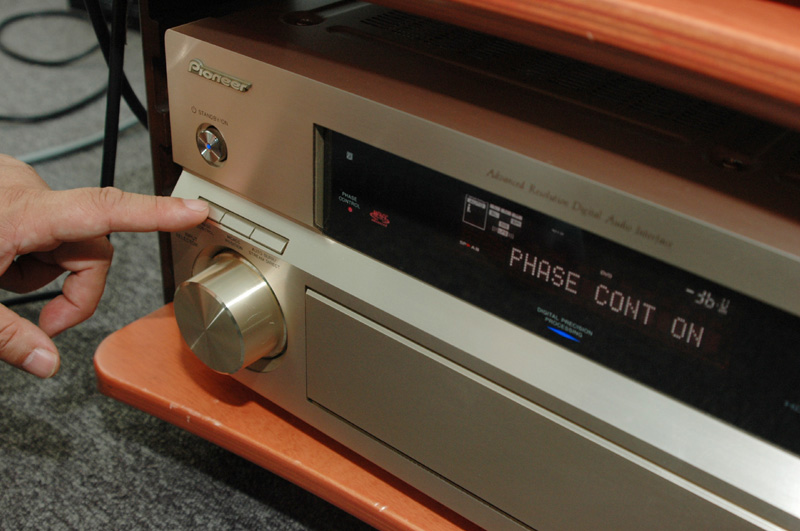 具体的にはLFEを拾い出すローパスフィルター(低域通過素子)が悪さをするためだ。あるデータによると、メインチャンネルに対してLFEの遅延が6ミリ秒以上もあった。ほぼ2メートルに相当する遅れである。「フェイズコントロール」は、メインとLFEとの間におきる時間のミスマッチを補正する、パイオニアの注目技術だ。