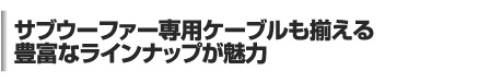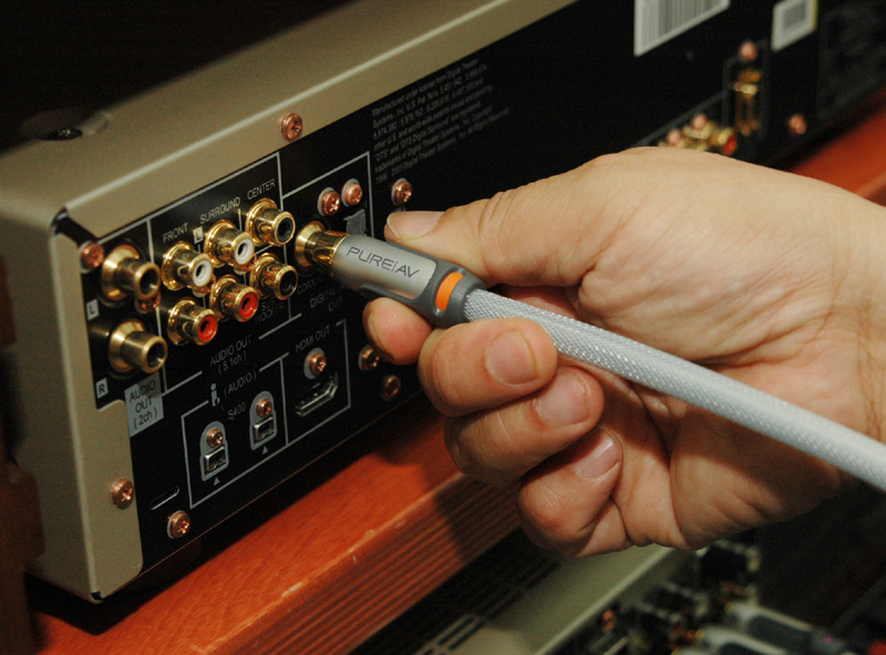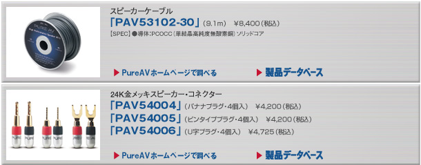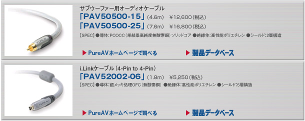 試聴したケーブルのラインナップだが、まずデジタル系では同軸とTOSの光、そしてi.Linkケーブルも揃えた。デジタルケーブルはPCOCC(単結晶高純度無酸素銅)導体や4層シールド、マルチコア光ファイバーなどこだわりの技術を注入している。i.Linkケーブルは、信号ロスやデータエラーを解消した高級仕様だ。一方スピーカーケーブルは、太さの異なる3種類の導体を帯域ごとに使い分けるハイブリッドテクノロジーを用いた。PureAVではより良質なホームシアター環境の構築に最適なサブウーファー専用ケーブルもラインナップしている。これはPCOCCのソリッドコア単線導体にて、低域の量感やエネルギー密度を確保する仕様だ。