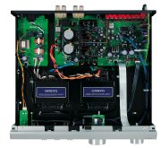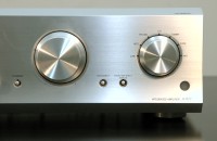 フォノ入力を増幅するイコライザー回路も、このクラスの製品としてはCR型を採用しているのが珍しい。オーバーオールでフラットで少量の負帰還を組み合わせたMM型対応の仕様だが、出力0.5 のMC型でも十分なS/Nがありクオリティが高い。中低域が厚く低域がよく伸び、躍動力の大きな表現はアナログ再生も魅力を引き出す。 定格出力100W+100W(8Ω)。脚には真鍮削り出しインシュレーターを装着、アルミ削り出しボリュームノブを採用するなど音質にこだわった設計が随所にみられる。 |