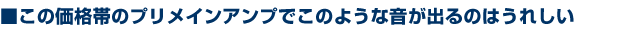 音は圧倒的に高純度、高速レスポンスで明晰だ。一点のくもりもなくインパクトは極めてスピードが速く応答する。トランジェントに優れ、バロック音楽の繊細な倍音スペクトラムも美しい。解像度が高く洗練されている。オーディオ機器で難題とされる高域特性もクセなく正確に表現して、S/Nも高く見事に描写される。この価格のプリメインアンプで、このような音が出るのはうれしい。同時にデジタルアンプの現状としても、これは確かに進歩の成果が見られる。