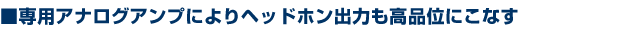 ヘッドホン出力回路はプリアンプ部から専用のアナログアンプで設計されている。透明度の高い音質、ダイナミックなレスポンス、解像度が高く、特に低音の駆動力が高くエネルギーの豊かな音が得られクオリティも高い。CDプレーヤーのヘッドホン出力よりも力感、パワーにはかなりの違いがあり有利であることがわかる。インピーダンス4