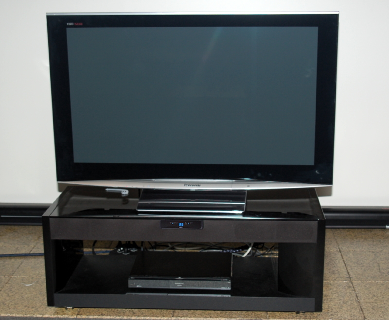 ラックの幅は1140mm。46V型テレビと合わせるとぴったりというサイズだ。その中にステレオ+サブウーファーの2.1chスピーカーシステムが組み込まれている。