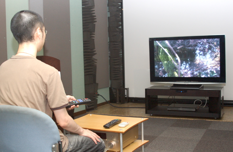 次は北京オリンピック開会式の録画を見てみた。これもサラウンドソースだ。やはりサラウンド機能が効果的である。サラウンド機能を使わない状態の音場も、テレビ内蔵スピーカーで聴くのと比べて厚みや情報量など明らかに上回る。しかし音場の広がりが狭いため音が密集しすぎて、やや混沌とする。極端に言えば体育館に大人数を詰め込んだような窮屈さがあるのだ。