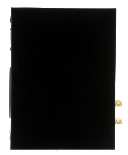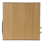 エンクロージャーのサイズは185W×300H×331Dmmと奥行きのある設計で、本機の深々とした低域方向の響きの再生音を演出するポイントになっている。主材には厚手の高密度MBF材、ギターのトップボード部にも使われるアフリカ産の高級材「Figured