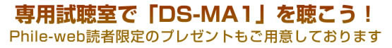 九段下にあるDIATONE試聴室で、スピーカーシステム「DS-MA1」の試聴会が毎月開催されている。試聴会は予約制で1回の定員は6名。しかも、Phile-web読者には特別にDIATONE特製ストラップがプレゼントされる!ふるって参加しよう!