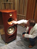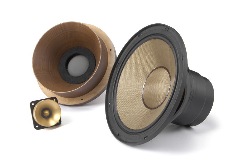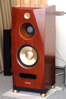 そして30mm口径トゥイーターは、同ブランドとしては初となるリングラジエータータイプを採用。リング状振動板の内側と外側で曲率を変化させる非対称形として共振を分散させ、5kHz〜80kHzという広帯域を1ユニットでカバーしていた。さらに振動板前面にフロントロードを装備、中央にイコライザーを設けることで、中域ユニットとの自然な繋がりを実現している。このフロントロード及びイコライザーは十分な比重を持つ砲金製だ。中高域のハイスピードかつナチュラルなサウンドに持つに負けない反応の良い低音再生を目指した30cm口径ユニットは、アラミッドクロスコーンを採用。アラミッド繊維も同社にとってはすでに使い慣れた素材、十分な強度を確保しながら、振動系質量をわずか70gに抑え、反応が良く、しかも固有音を感じさせることのないナチュラルな質感を実現しているのだ。