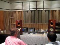 エンクロージャーはシトカ・スプルースランバーコアを3層構造のフロントバッフルを採用しているが、3枚のランバーコア材は90度ずつ向きを変え強度を確保すると同時に共振モードをコントロールしている。そしてリアバッフルは2層構造、サーフェイスはアメリカンチェリーの突板にウレタン着色仕上げを施し高級感を醸し出す。スプルースランバーコア材はピアノに使われているもので美しい響きを得るための選択。その供給はカワイ楽器から受けているという。