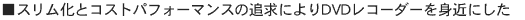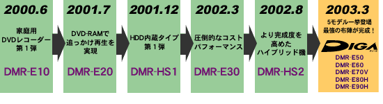 その技術をベースに2000年6月、家庭用DVDレコーダーの第一弾、DMR-E10が登場した。DVD録画時代の幕開けを告げる記念すべき出来事であった。