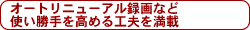 本機は、「オートリニューアル録画」機能を搭載し、テレビをさらに便利に楽しむ工夫を凝らしている。この機能をオンにしておくと、毎週または毎日オンエアされるレギュラー番組については、ほとんど何の予約操作もいらなくなる。最初の予約時に時間枠を指定した番組は、レコーダーが古い番組を消去し、自動的に最新の番組に置き換えてくれるからだ。連続ドラマはもちろんだが、ニュースの時間枠を指定しておけば、毎日好きな時間にその日のニュースを見ることもできる。