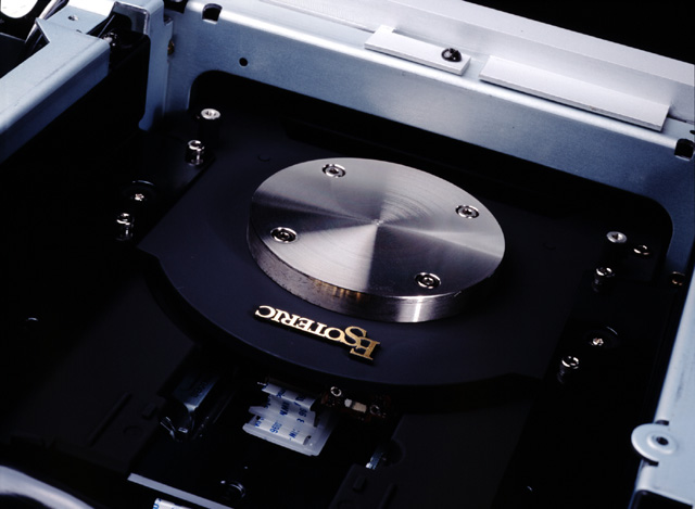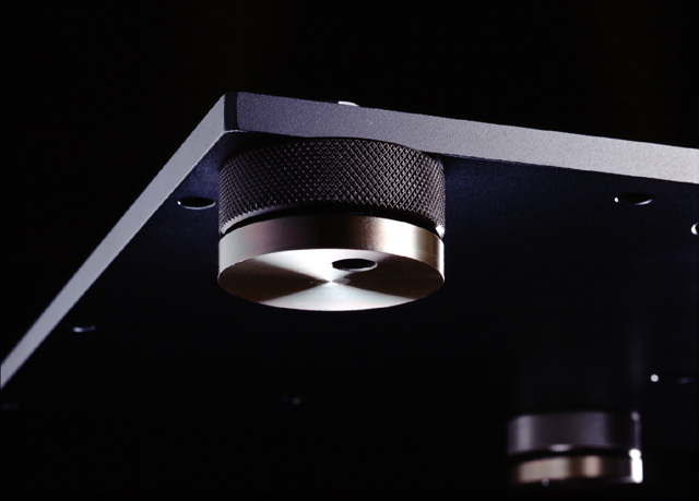 エソテリックのCDプレーヤーは、メカニズムの精度と剛性への徹底したこだわりが貫かれているが、本機もその思想をしっかり継承した。底板に5ミリ、天板に6ミリ厚の鋼板をそれぞれ使用した総質量20kgを超える筐体は、共振とは無縁の堅牢さがあり、3点支持方式のスパイク状フットでしっかりとサポートされる。なお、このフットは本体側のスパイクと受け皿が一体構造になった形状で、セッティング時に位置調整が必要ないなど、とても扱いやすくなった。