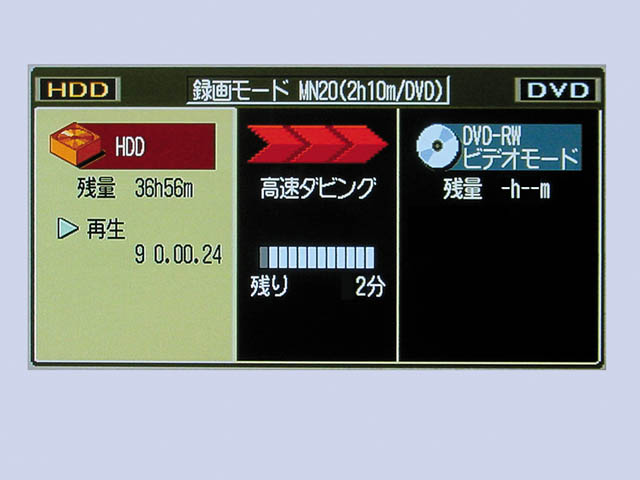 高速ダビングする場合、オリジナルの記録レートが低いほど、ダビング時間は短くて済む。DVDに書き込む速度は一定なので、同じ長さの番組なら、記録レートが低く、データのサイズが小さいほど、短時間でコピーできるわけだ。この関係は、パソコンで大容量のファイルをコピーする際の感覚に近い。