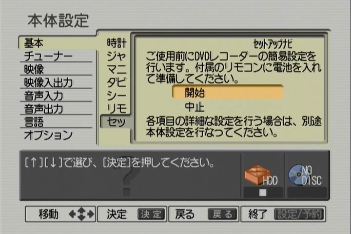 オーソドックスといっても、そのインテリジェントな新しさは電源ONですぐ判る。初回に「セットアップナビ」が自動表示されるからだ。この画面は、PCで言うところのウイザードヘルプのような機能で、チャンネルや時刻設定、TVアスペクト比など7項目の質問に答えていくだけで初期設定が済んでしまう仕組みだ。
