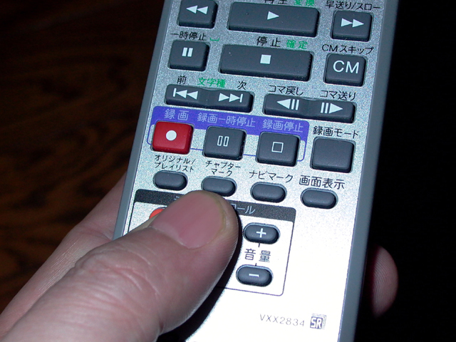 | DVD-RW(VRモード)では、録画・再生中にリモコンの「チャプターマーク」ボタンで、好きなシーンにチャプターを打てる。HDD録画では、このボタンは無効になる(以下の写真はすべてクリックで拡大) |