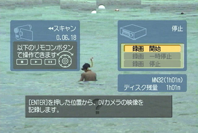 | DVR-7000の、シースルーの画面が涼しげなDV取り込み画面。イラストを多く採用して、視覚的に操作が行える(クリックで拡大) |