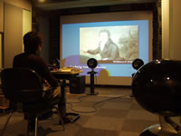 フロントLRとセンターがリスニングポイントから同じ距離になるように、センタースピーカーを少し遠ざけ、スクリーン側に近づけた。これですべてのスピーカーが自分から等距離だ。その結果、音場の広がりが非常に豊かになり、また、ダイナミズムの変化が滑らかで、微妙な音の出だしや消え行く余韻の再現が見事に洗練される。DVDオーディオのオーケストラ音楽では、ティンパニーのアタックの速さが際立って印象的だ。