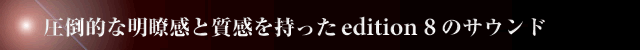 <シリーズ比較試聴> Part.1〜「edition 8 VS edition 7」 「ジャーニー」のギタートーンはリッチで豊かな音伸びがある。エッジ感は強めだが、ベースの太さは程良く確保され、音ヤセは感じない。「オスカー」のスネアやキックはボトムの太さがあり、滑らかで艶のある質感表現は流石だ。「ヌーン」ピアノの響きは豊潤で煌びやかなエッジがゴージャスさを演出する。 両機を聴き比べてみると、小音量でのリアリティ、音色のニュートラルさ、解像感と透明度のバランスは最新モデルである「edition 8」の進化が明らかに見て取れる。また軽快な装着感においては「8」が大差で引き離した感もあり、editionシリーズの高品位なサウンドがよりポータブルで楽しみやすくなったことはうれしい限りだ。