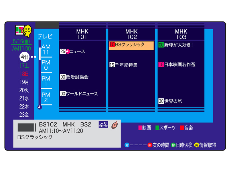 | リモコンの「番組表」ボタンで呼び出せるEPGは、地上・BS・110度CSデジタル放送に対応 |