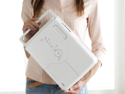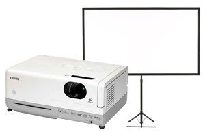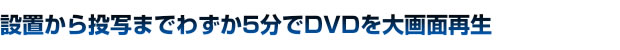 | 実際にセットアップしてみると、この簡単さには驚かされる。本体は約3.8kgと小型コンパクトで、ハンドルも付いているため容易に持ち運べる。80型ワイドスクリーンは簡単に組み立てることができ、幅1.8mのスペースさえあればすぐに設置できる。プロジェクター本体の設置は、スクリーンに向かってテーブルなどを用意すれば良く、2.4mの距離で80インチのワイド画面でDVDを投写できる。ここまでのセットアップ時間は5分足らず。驚きの簡単さだ。