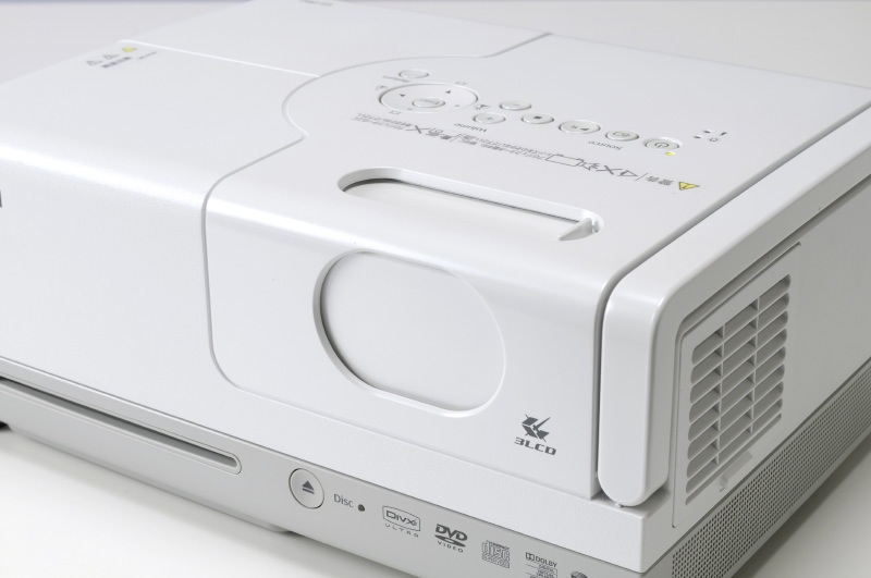 一つ目は、標準の同梱品である”天井投写キット”を活用する方法だ。寝室のベッドの上に寝転がって映画を見られれば、どんなに快適なことだろう。このキットでは白い天井をスクリーンとして使うことができ、寝ころびながら映画を鑑賞する極楽スタイルを提供する。 二つ目は”DVD以外の再生”で、外部機器を繋げば何でも大画面に楽しめる。例えば、BDレコーダーなどで録画した映像を楽しめるのはもちろん、最新ゲームもスクリーンのド迫力で楽しめば臨場感満点。ホームビデオの上映会にも使えるし、USB端子も搭載しているのでデジカメ写真をスクリーンで鑑賞することも可能。家族で楽しむ大画面の楽しさは格別だ。 三つ目は”音”のパワーアップで、前面にはヘッドホン端子を搭載、背面には同軸デジタル出力端子を搭載しているので、夜中にはヘッドホンでDVD視聴したり、将来的にサラウンドシステムを購入して本格的なマルチチャンネルシステムを構成することもできる。