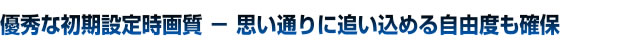 映像に適応して絞りを調節し、暗部を引き締めるオートアイリス技術には、映像の明るさを1/60秒単位で自動認識して従来の2倍速で動作する高速モードも新搭載。さらにアルゴリズムなどの最適化も図ることで、コントラスト比18,000対1*を達成している。新開発の”NEWエプソンシネマフィルタ”は上位機種と共通で、電子的に色補正を加えることで色再現範囲の広さをNTSC比で約115%と広げ、余裕ある再現力を得た。まさに上位機種の技術のエッセンスを取り込み、練り上げられたモデルなのである。 *ダイナミックモード、オートアイリス標準/高速時