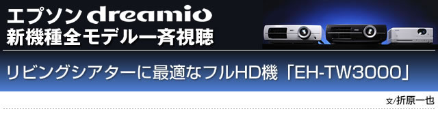 エプソン”dreamio”では、最上位機種にあたる「EH-TW4000」の弟分として「EH-TW3000」をラインナップ。高画質を追求した上位機種と筐体はほとんど変わらないが、リビングルームでの映画鑑賞という新しいテーマを掲げ、気軽に高画質を楽しめるよう作り込まれている。