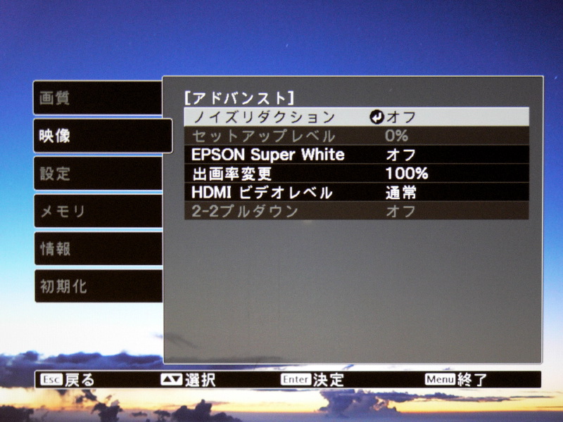 EH-TW3000には映像の視聴環境に応じて6つのモードがあるが、視聴では「シアターブラック1」の設定を利用し、フィルムライクな映像の再現を目指した。なお、オートアイリスはあえてオフとした方が全体のバランスは良いと感じた。 今回はブルーレイの3作品を選んで視聴したが、SFアクション『メン・イン・ブラック』は明るいシーンが多く、力強い描写でデフォルトの設定でも文句なし。 『ラスベガスをぶっつぶせ』は、チャプター7の冒頭で映されるラスベガスの空撮の夜景と、溢れるネオンの光のシーンが特に美しいが、EH-TW3000はその魅力を存分に描き出した。EH-TW3000の美点は映像の輝きにあり、『メン・イン・ブラック』は全体の屋外シーンの色味、『ラスベガスをぶっつぶせ』は暗闇に煌めく光の渦に圧倒された。フルHDの精細さを持ちながらも誇張感のない、自然な情報量を持った映像で、映画の再生で特に重要な階調表現も十分にこなす。 より映像にこだわるのであれば、エプソンのカラーマネージメント技術”Color Reality III”を活用して、カスタムガンマ、6軸のカラー調整、アドバンストシャープネスからなる画質調整で、作品ごとに追い込むのも楽しい。『ラスベガスをぶっつぶせ』では、カスタムガンマ機能で最暗部を若干持ち上げるとディティールがさらに浮かび上がってくる。