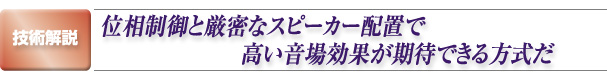 また、独自の位相制御の効果を十分に発揮させるため、厳密なスピーカー配置を採用していることもOPSODISの大きな特徴だ。スピーカーは左右とセンターの3個だが、両側のスピーカーには低音ユニット、センターは中高域ユニットを配置。耳からの角度を周波数ごとに変えて、音場制御の効果を高めることが狙いだ。