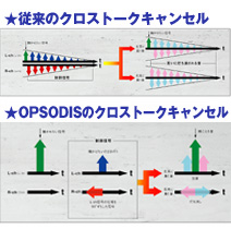 OPSODISの動作原理は、音声信号の位相を制御することによって、立体音場効果を生む成分を、ターゲットとなる耳だけに届けることにある。これはクロストークキャンセルと呼ばれ、仮想サラウンド再生では非常に重要な手法だが、従来は逆相成分を加えて余分な音を打ち消すことで実現していた。しかし、OPSODISは位相を90度回転させた信号を加えることによって、右または左の耳だけに目的の音を届ける。従来方式とは異なり、逆相の打ち消し信号を多数発生させることがないので、より音源に忠実な再生ができるアドバンテージがある。