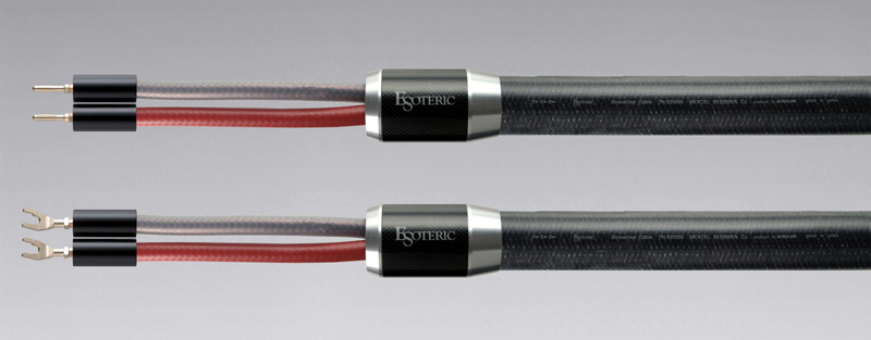 スピーカーケーブルはSシリーズとして分類できる、S10000とS20000の2種類がある。上位モデルのS20000はケーブル外径36φの圧倒的な太さに驚くが、ケーブル構造は共通している。誘電率が低く、制振特性に優れた高分子ポリオレフィンの絶縁コアを中心に、7N銅平角MEXCEL線を編み上げたケーブルが内部に2本、それを包む外周は制振充填構造で徹底防振。S20000は内部ケーブルだけでも外径12φもある極太である。S10000はケーブル外径20φ、柔軟で扱いやすく設計されている。端末は、いずれのモデルもYラグとバナナを選択して指定ができる。