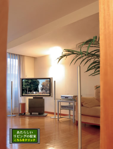 大画面・高精細といった特徴を持つプラズマディスプレイと、セッティングの場所を選ばないDDスピーカーは、住宅内で最も大きな空間であるリビングに設置するのが最適だからです。 |