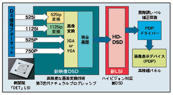 この画素変換回路に、プラズマとしては初のハイビジョン2−3プルダウンを加え、滑らかな動きを実現するのがDETというわけである。