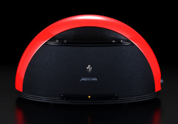 内部構造に注目してみると、トロイダルトランスを採用した高効率電源回路、表面実装技術を駆使した高密度なメイン基板、振動対策を徹底させたドライブメカなどを立体的に組み合わせており、メインユニットとサブウーファーで構成されたスピーカーブロックは巧みに電気回路と隔離されていることがわかる。 メタルと合成樹脂の特殊なコンポジット素材などを使っていることもあり、本体は見かけから想像するよりも重量級で、仕上げの質感も高級システムにふさわしいものだ。オプションで用意されるiPod用ドック「i80」も本体と共通のデザインに統一されている。
