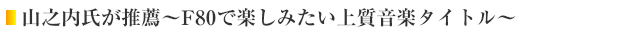 筆者の愛聴盤、ノラ・ジョーンズの『Not Too Late』(EMIミュージック・ジャパン)はギターやピアノがとてもナチュラルで、少し大きめの音で再生しても無理な力みがないのがいい。本体のサイズが小さいにも関わらずベースは驚くほど豊かな響きを引き出すのだが、そのベースの音に余計なふくらみとかノイズがまとわりつかないので、ピアノやギターの音色がくもらず、とても風通しがいい。ボーカルは輪郭がにじむことがなく、透明なタッチで伸びやかに広がっていく。別のことをしながら聴いていてもアコースティック楽器の良質なサウンドで気分がリフレッシュできるし、音量を上げてじっくり聴けば息遣いや余韻までリアルに再現していることに驚かされる。こんなに小さなボディから、なぜこれほどストレスフリーのなめらかな音が出てくるのか。私の部屋を訪ねてきた知人は、誰もが例外なく不思議そうにF80を眺めていた。 パット・メセニーとチャーリー・ヘイデンの『ミズーリの空高く』(ポリドール)は、ウッドベースとアコースティックギターのデュオが心地よい空気を運んでくる。テーブルトップに載るほどコンパクトなシステムで、ギターはともかくベースは厳しいのではと首を傾げる読者がいるかもしれないが、F80ならその心配はいらない。2つの楽器のバランスも自然だし、ベースの音色も澄み切って、しかも十分に深い。