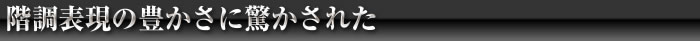 | 画質を判断する時、キメの細かさ(画素数)が話題になるが、実は階調の再現が重要だ。階調(トーン)とは白から黒に至るまでの明るさの変化のこと。フィルムにもテレビにもデジタルカメラにも必ずある要素である。デジタルカメラは明るい部分(ハイライト)の表現が苦手だ。雲や白いシャツがべたっと真っ白に写ってしまうことが多い。