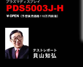 カラーフィルターの差は、黒の表現にも影響する。PDS5003J−Hの黒を凝視していると、うっすらとラベンダー色の気配を感じる。通常のプラズマ・ディスプレーで最も多いのは、ラベンダーが強く混ざった黒である。もしそうだと、漆黒の闇が赤紫に近い色で表現されることになる。また、シネまスコープやビスタサイズ画面の上下に出る黒い帯まで赤紫がかってしまう。これは、映画鑑賞では、大きな違和感に繋がる黒の色調である。PDS5003J−Hの場合は、ラベンダーがうっすら混じっていても、黒が支配的な領域に止まっているから、違和感には繋がってはいない。 |