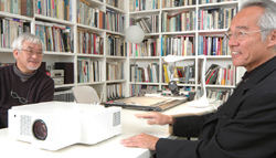 鈴木 僕はこの建物のデザインが好きなんです。いらないものが一切ない。必要最小限に抑えているからこそ、とても美しく感じます。今日、このプロジェクターを見て、「一緒にデザインしたんじゃないの?」と感じました。初期の頃のモダニズムかな、という感じがするんです。コルビュジェの初期の作品にすごく似てるじゃないですか。